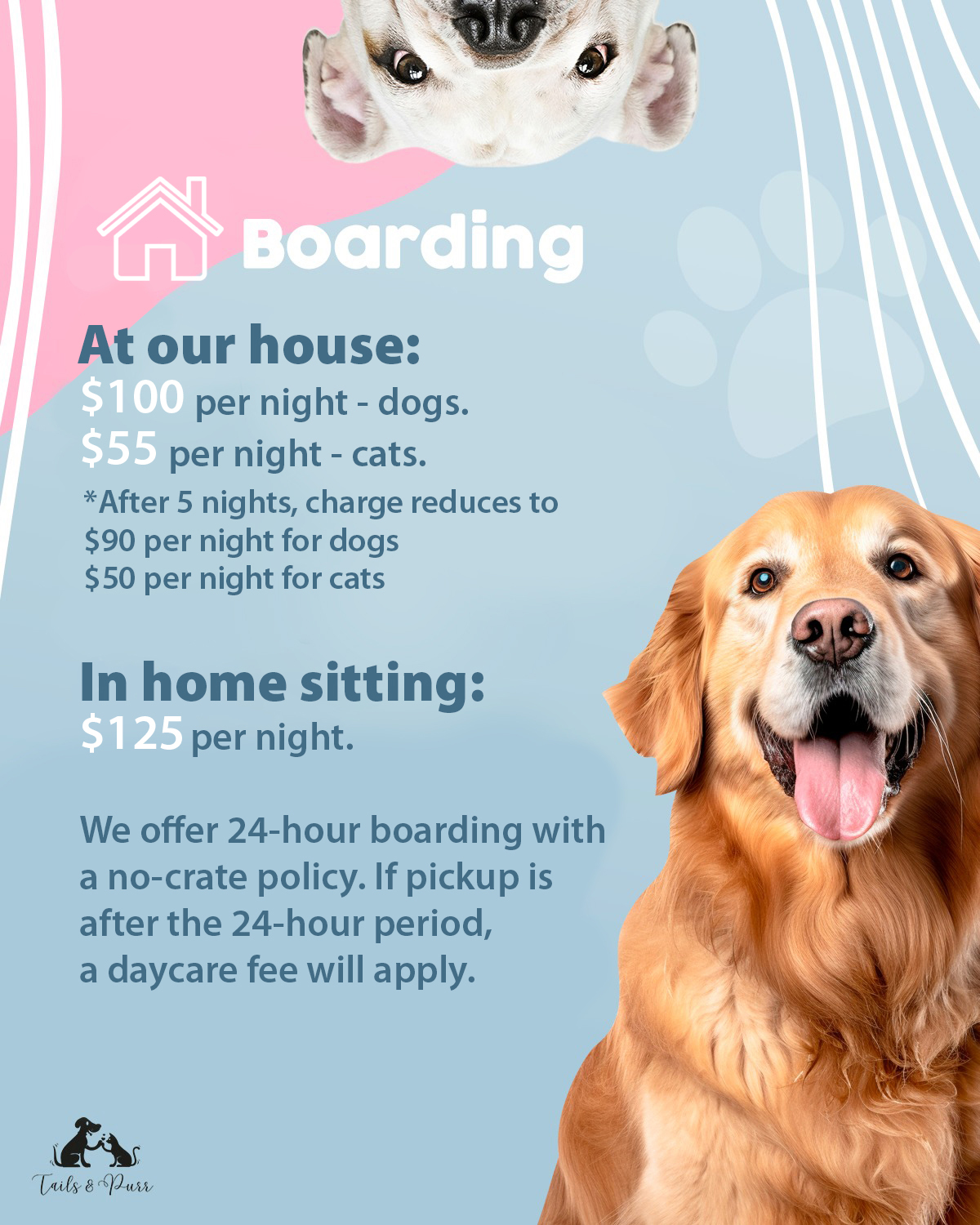 A cozy vacation home for your pets while you are away. A place where tails wag with excitement and purrs fill the air. Your pets will be pampered, nurtured and surrounded by caring hearts.